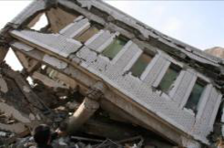 (c) 倒塌后的北川青少年活动中心东面 |
