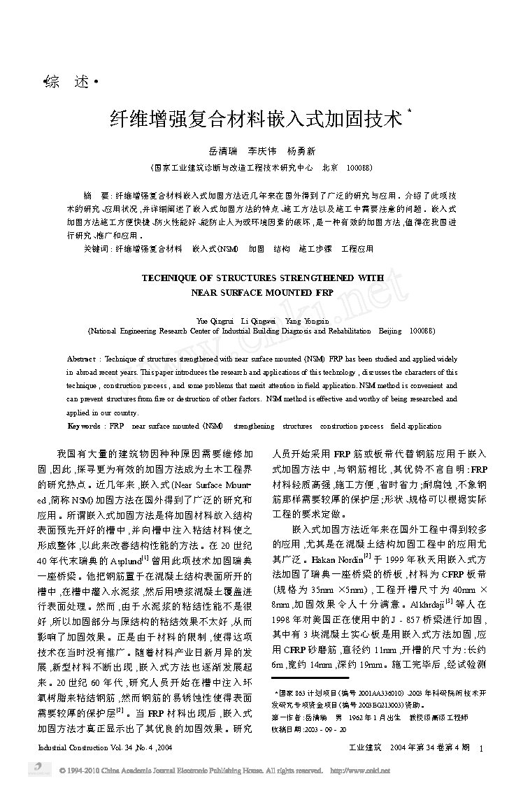纤维增强复合材料嵌入式加固技术